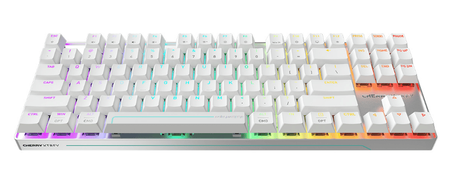 Model MX 8.2 Pro TMR Wireless to klawiatura w formacie TKL (bez bloku numerycznego). Konstrukcja opiera się na aluminiowej górnej ramie i nakładkach typu PBT. Zastosowano tu przełączniki CHERRY MK Crystal Magnetic.